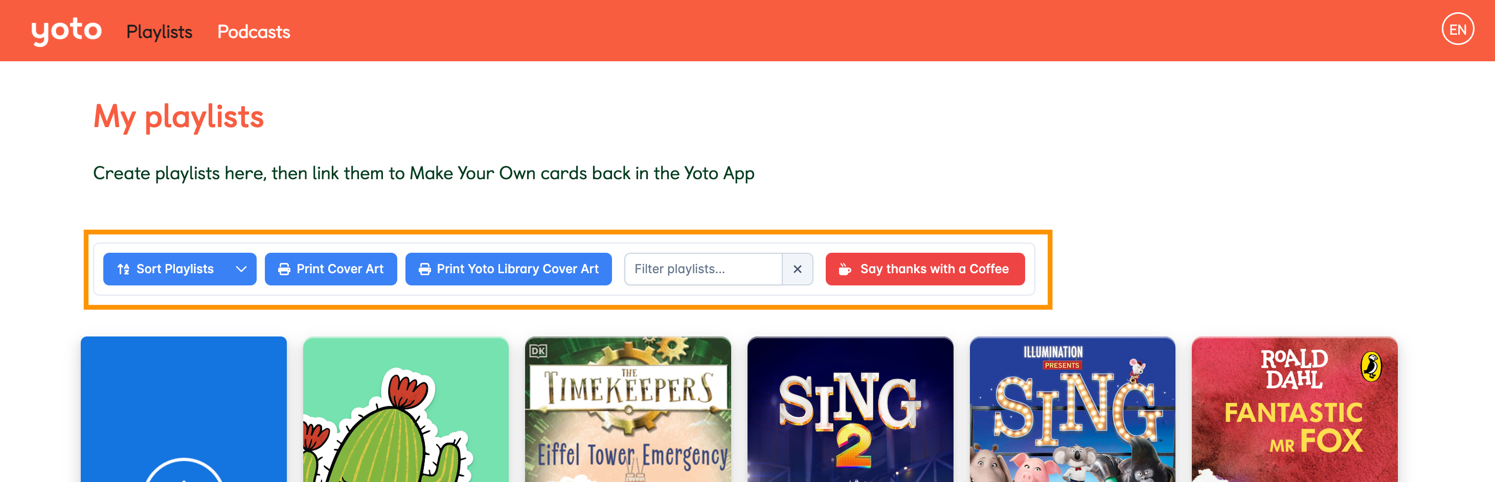 Now that it's installed, head over to https://my.yotoplay.com/my-cards and you will see some new blue buttons along the top.